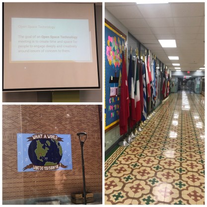 - Interdisciplinary Teams: When I taught at this school, I found it so exciting to plan with an interdisciplinary team of teachers to create authentic connections for students. Teaming helps teachers work collaboratively, and it also allows teachers to know their students in a wholistic sense. It was cool to hear the teachers talk about the work they do in interdisciplinary teams since I had been there, and what they were doing to continue traditions and expand upon them. In my first couple years, the English and World History teachers decided to combine their classes into a longer block section of WorldEng, and after seeing the success, now today that is the structure of Freshmen, Sophomore, and Junior classes. One of the teachers explained how cool it is “to teach and learn English through the lens of Geography, and vice versa.” They also are continuing in and out of state field trips in which every content is represented, as well as daily projects and assignments incorporating multiple disciplines at once (several are posted on my blog and I loved hearing about new ones). The teachers said students often comment how they see the connections between the subjects because of the work they are doing in every class.